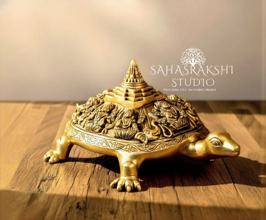 Ashtalakshmi Tortoise with MahaMeru - Handcraftedin pure Brass
